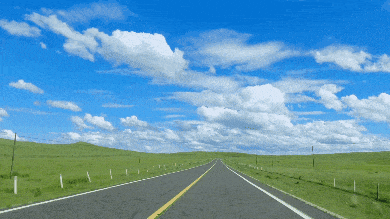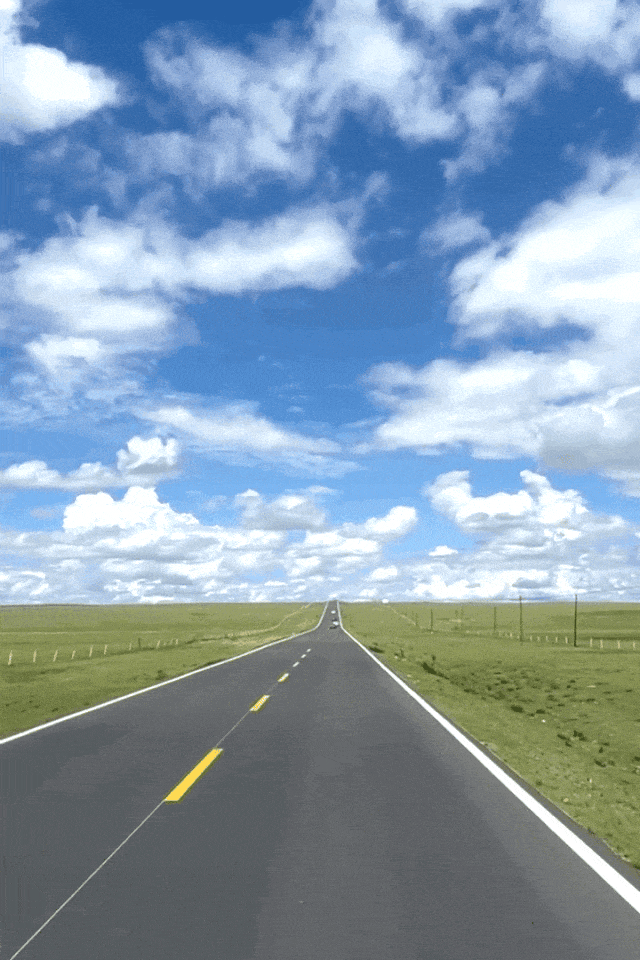 直达天际的笔直公路,悠闲吃草的牛羊,蜿蜒伸展的河流,浮在山头的云彩,邂逅的每一朵云、一道光...