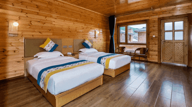 纯木质风格的设计,仿佛是从山林间自然生长出来的一部分,整个房间都散发着原本的木质芳香,仿佛置身于大自然的怀抱之中。