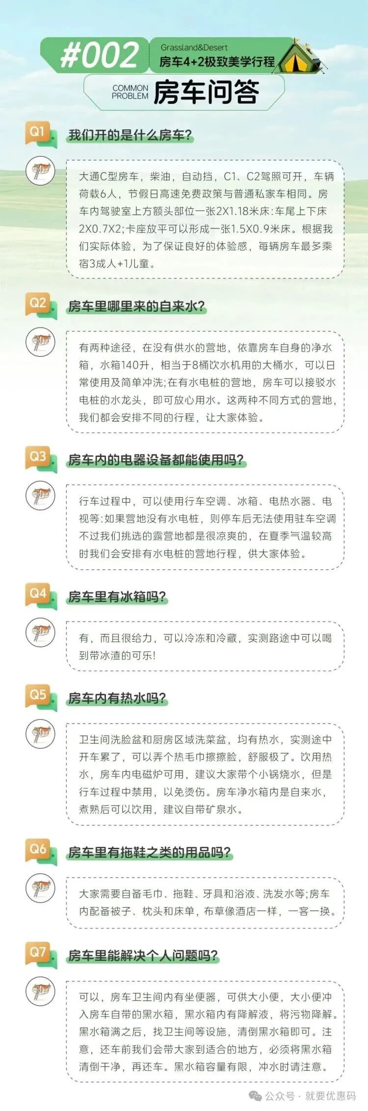★每班期7辆房车封顶,以下单顺序为准预留房车,如当日班期满额,客服会与您协调改期或者取消。