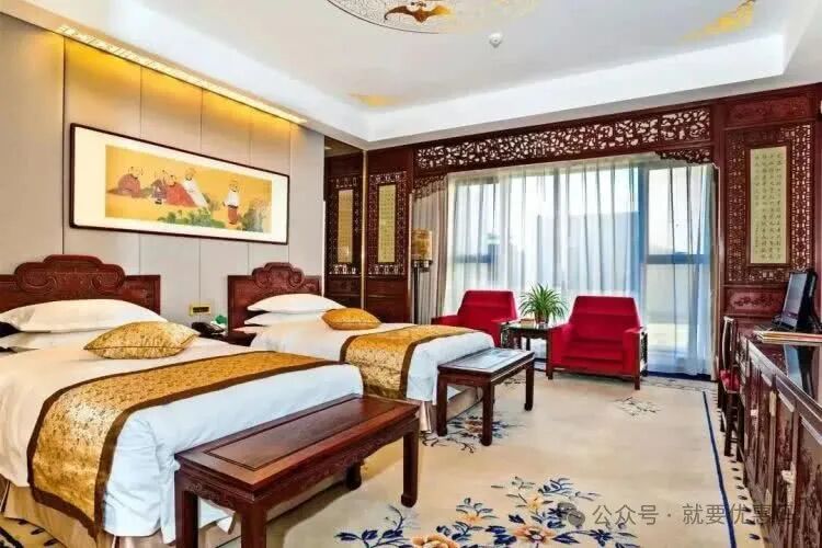 而当走进房间那一刻,简直惊呆了~中式设计风格配上精致的红木雕花隔断、古典精美的家私以及澳洲纯羊毛地毯,每一处细节都透露着浓厚的文化气息。
