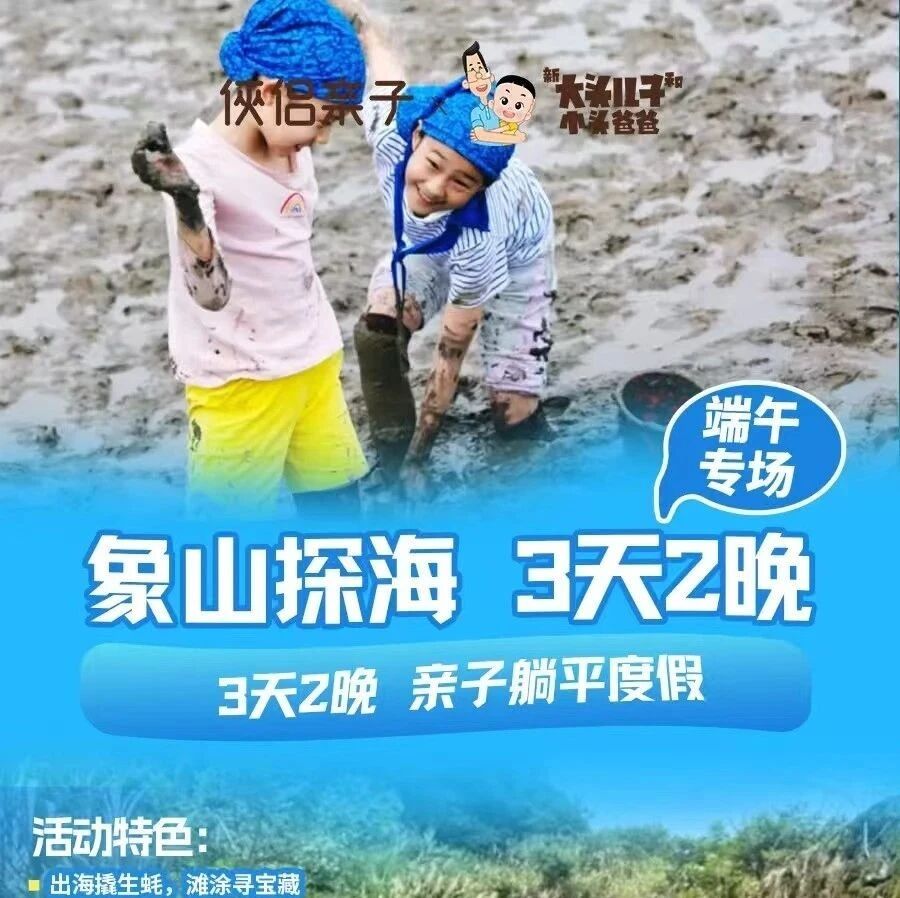 【端午亲子】象山探海3天2晚亲子营丨出海捞生蚝,滩涂寻宝藏,岩头古村漂流,领队带娃、摄影师跟拍,5钻海景度假酒店2晚连住! 2025年5月13日星期二 口碑爆款,线路可定制 [图片]端午亲子出行怎么能少了海边旅行呢?阳光微好,碧海滩涂我们一起去看海宝藏地-象山一线海景5钻度假酒店2晚连住独享北纬30°最美海岸线[图片][图片][图片]©5钻海景酒店2晚连住玩沙赶海是孩子们的最爱大手拉小手,尽情踏浪出海撬生蚝,滩涂寻宝藏捕捉跳跳鱼,捡拾花蛤感受赶海嬉水... 上一篇 下一篇