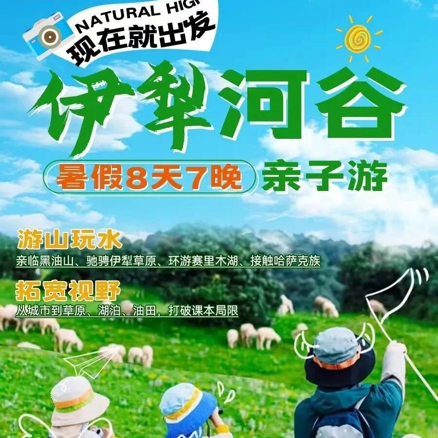 暑假【伊犁河谷8日亲子游】亲临黑油山、环游赛里木湖、驰骋伊犁草原、接触哈萨克族,从城市到草原、湖泊、油田,感受自然与工业的多样性,打破课本局限