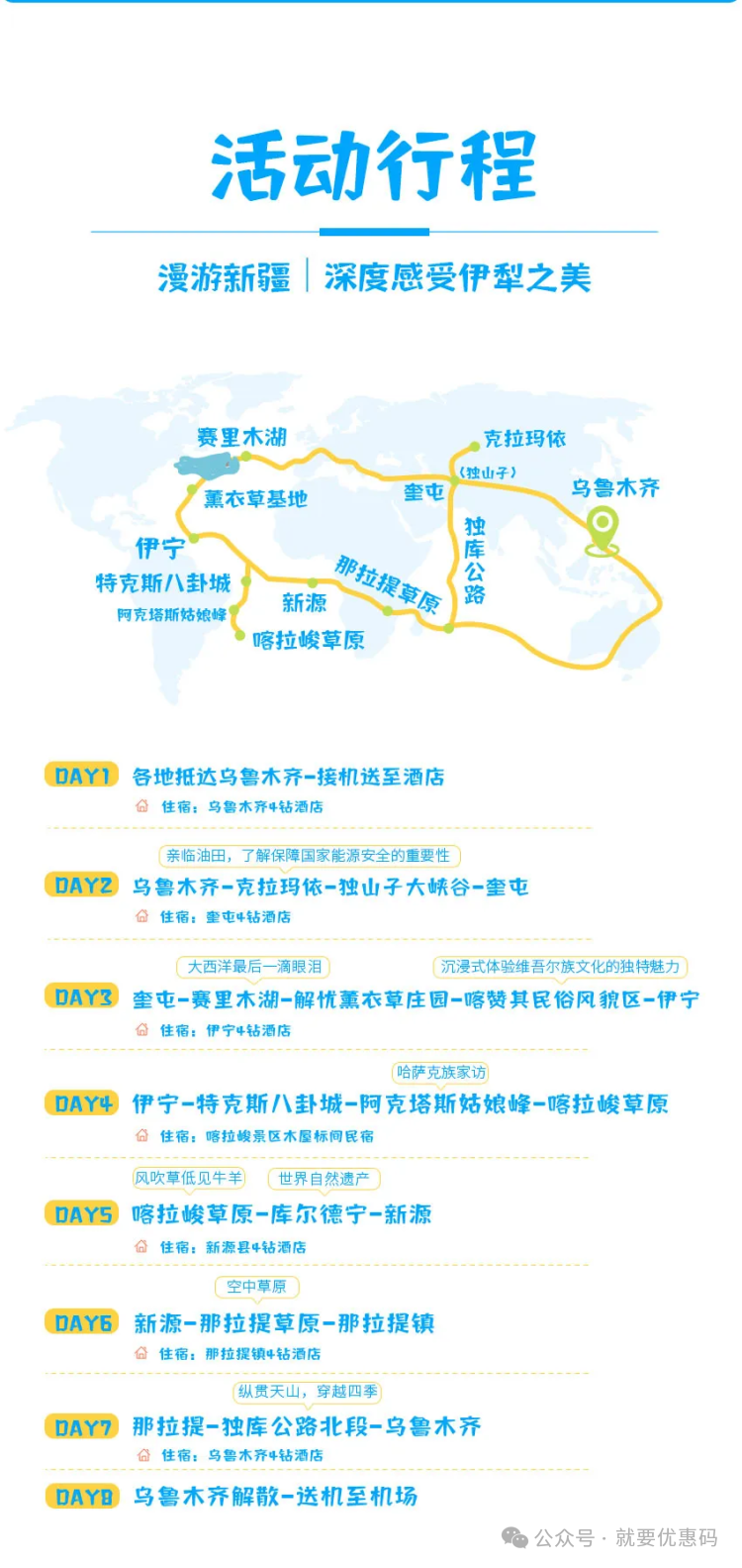 暑假【伊犁河谷8日亲子游】亲临黑油山、环游赛里木湖、驰骋伊犁草原、接触哈萨克族,从城市到草原、湖泊、油田,感受自然与工业的多样性