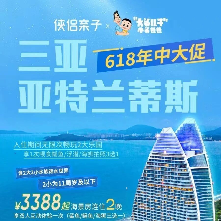 【三亚亚特兰蒂斯酒店 | 618狂欢预售!全家沉浸式玩海,解锁"海底王国"亲子天花板!】——¥3388住2晚海景房+无限次水世界+独家海洋互动,手慢无!