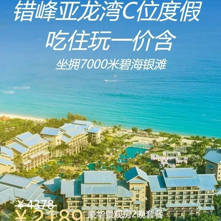 错峰亚龙湾C位海岛度假!\x0d\x0a【三亚亚龙湾希尔顿酒店】\x0d\x0a¥2189起吃住玩一价含\x0d\x0a豪华景观房2晚+每日自助早餐+1次自助晚餐+亲子活动\x0d\x0a坐拥7000米碧海银滩