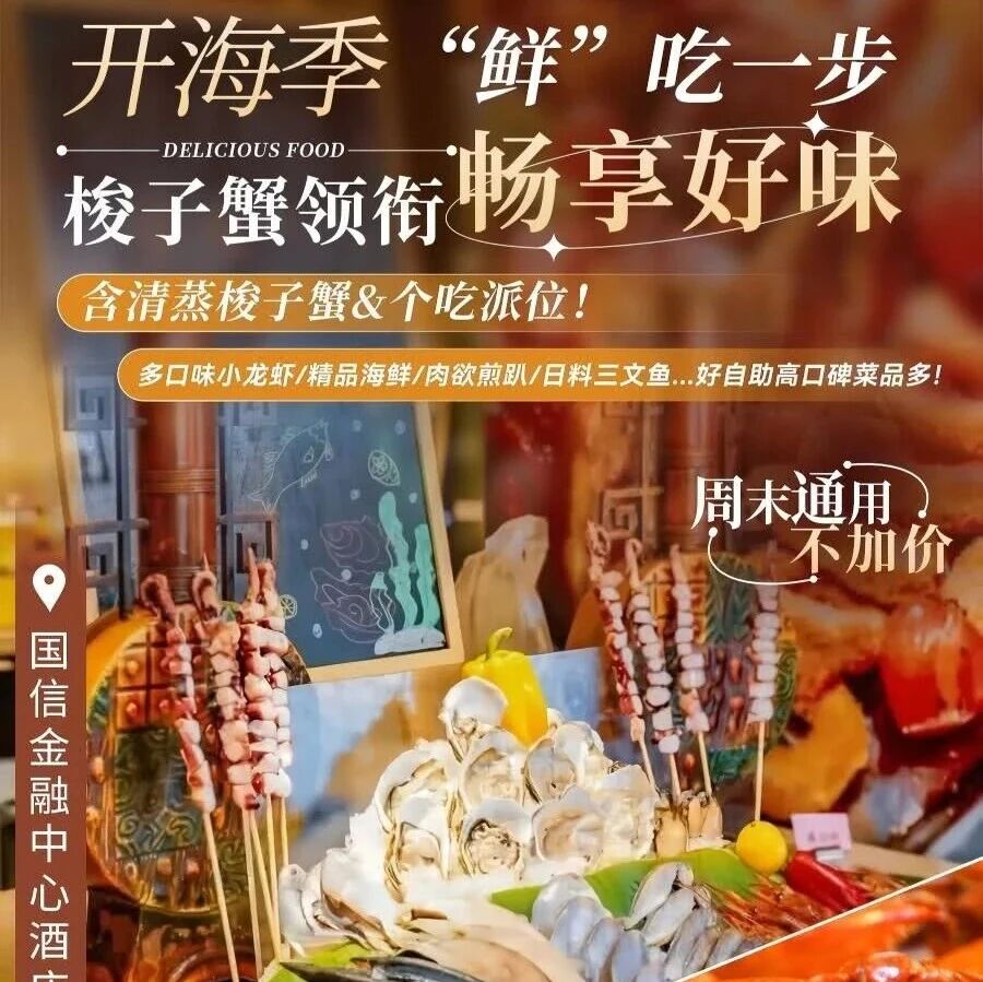 开海季海鲜自由!青岛海天金融中心酒店自助餐,168元实现梭子蟹小龙虾畅吃!