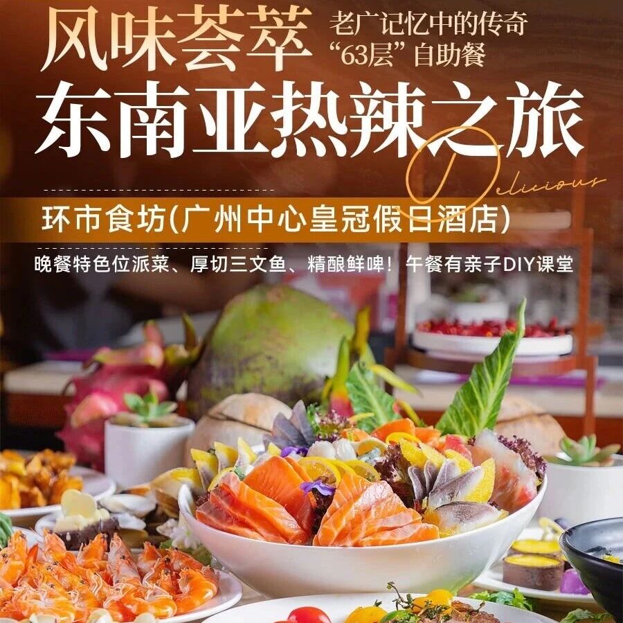 Hey姐妹们!作为土生土长的老广,今天要跟大家分享一家充满广州城市记忆的宝藏自助餐——广州中心皇冠假日酒店!就是老广们口中那个传奇的 "63层" 啊!这里曾经是上世纪90年代的中国第一高楼,承载了多少广州人的成长记忆,现在焕新升级,推出了超值的东南亚主题自助餐,赶紧来打卡这份情怀与美食的双重体验!